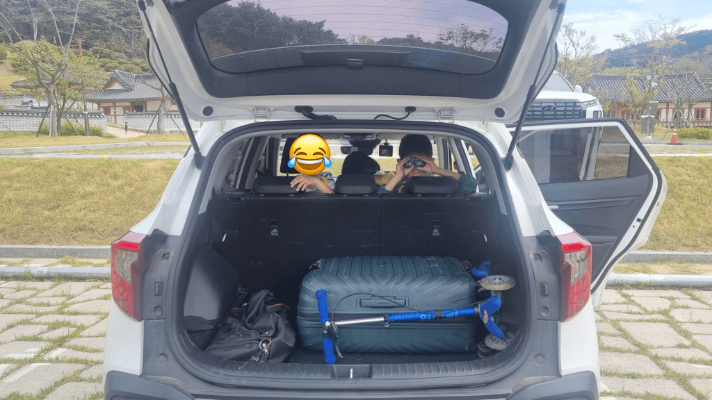 그런데 쏘카를 타려면, 쏘카존에 가야 한다. 제일 가까운 곳에 있는 쏘카존은 1호선 온양온천역에 있다. 다행히 온양온천역에 SUV 한 대가 남아 있었다. 문제는 어떻게 거기까지 가느냐는 거다. 큰 캐리어에 각종 망원경, 백팩 2개, 가방 두 개, 에코백 3개, 아이들 배낭 두 개, 첫째가 죽어도 가져가야 한다는 킥보드까지…. 카센터 사장님이 근처 택시를 불러주셨다. 1호선 온양온천역에 갔다. 눈앞에 1호선 전철이 서 있었다. 도요새고 뭐고 그냥 저걸 타고 집에 가고 싶은 생각이 굴뚝같았다.